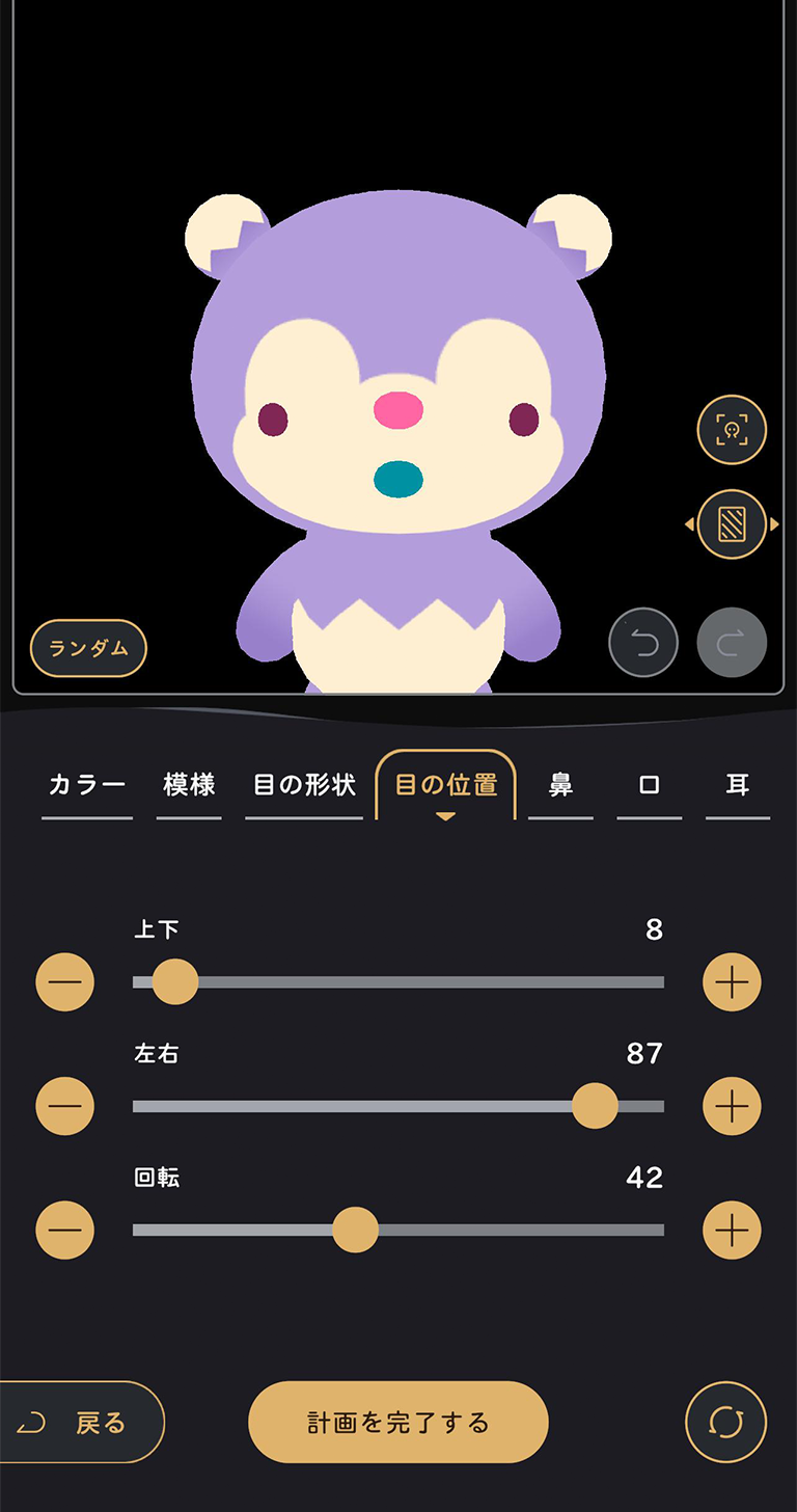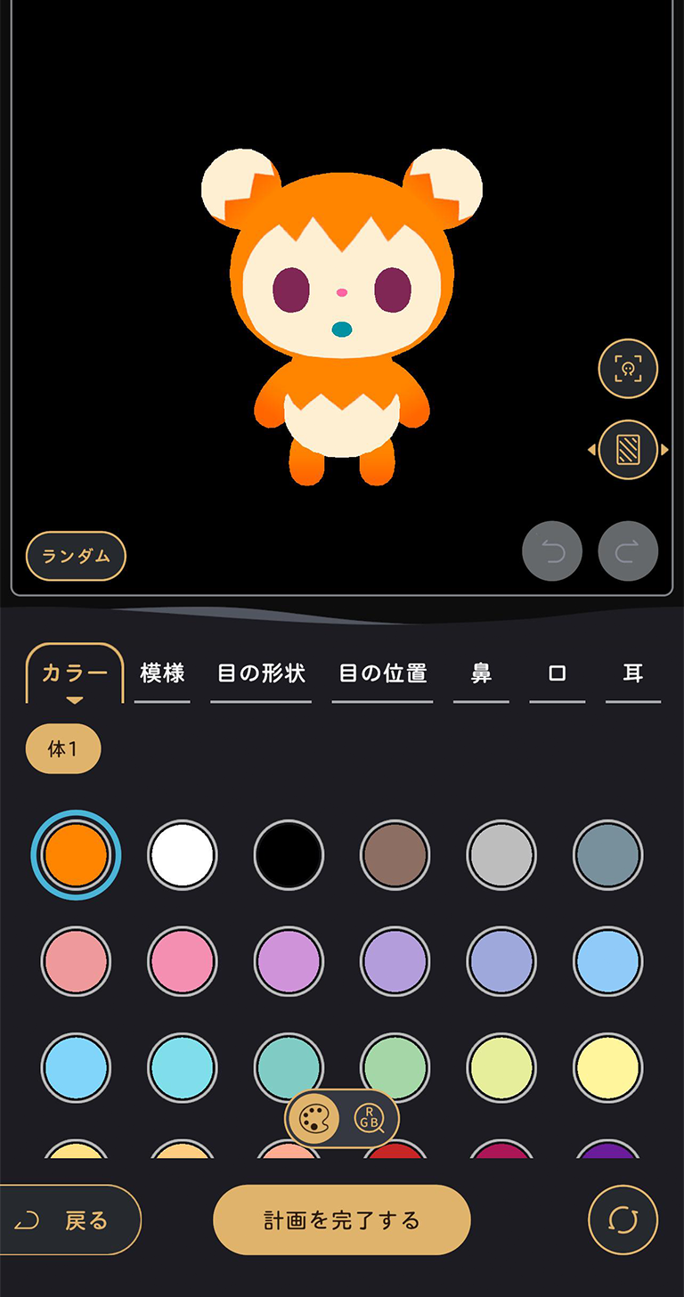 体の色や模様、パーツの位置や大きさまで自由に調整して、リヴリーを造り出せます。
